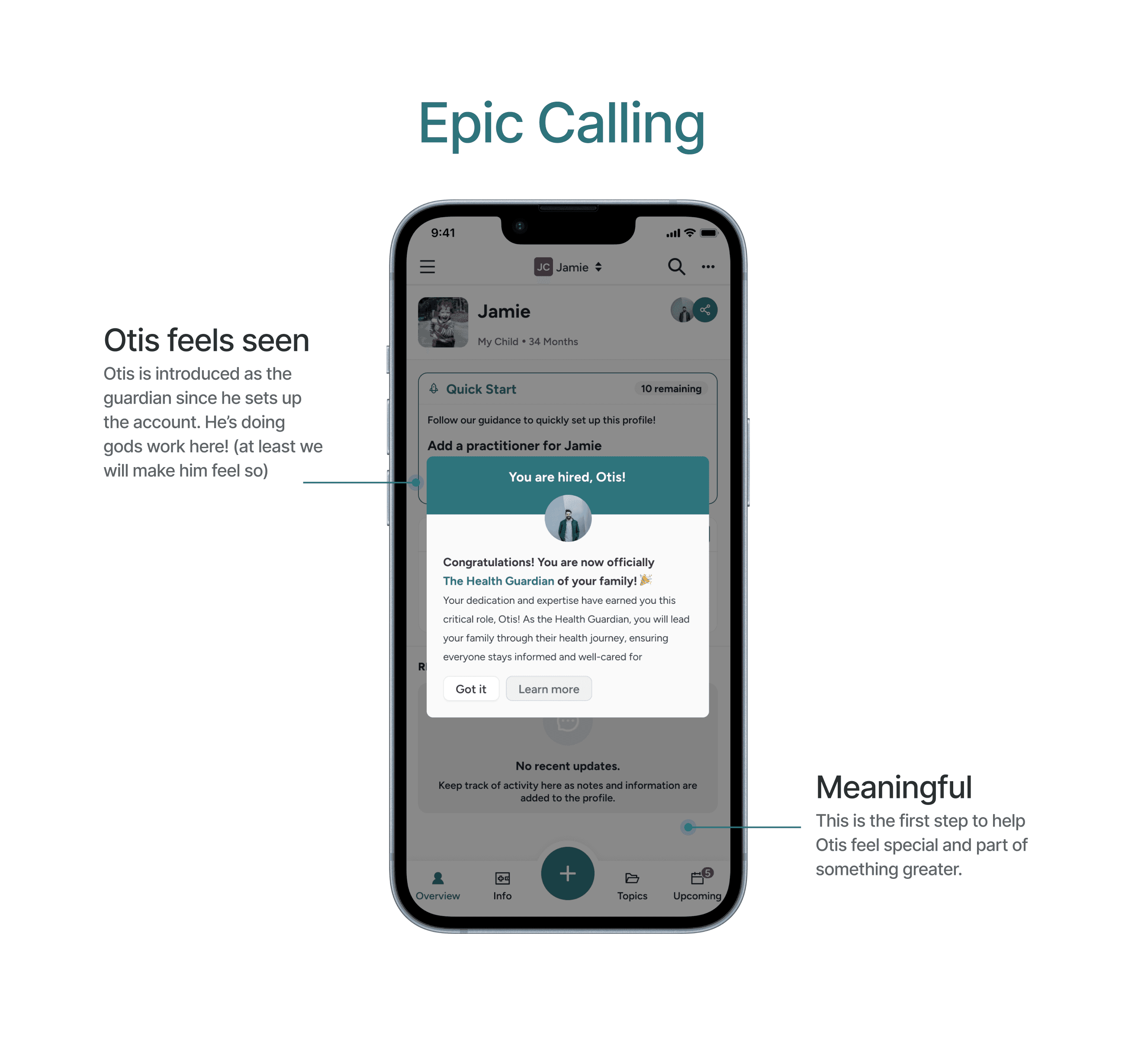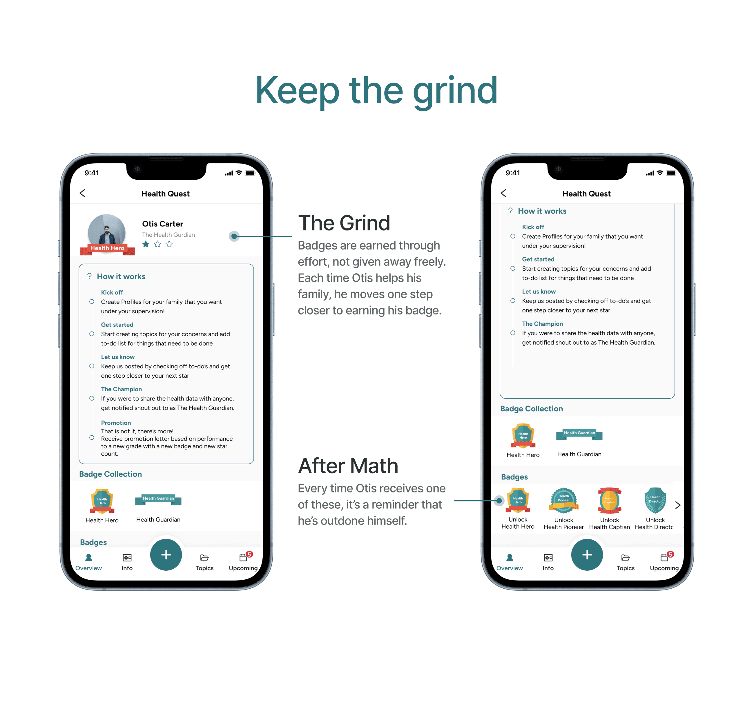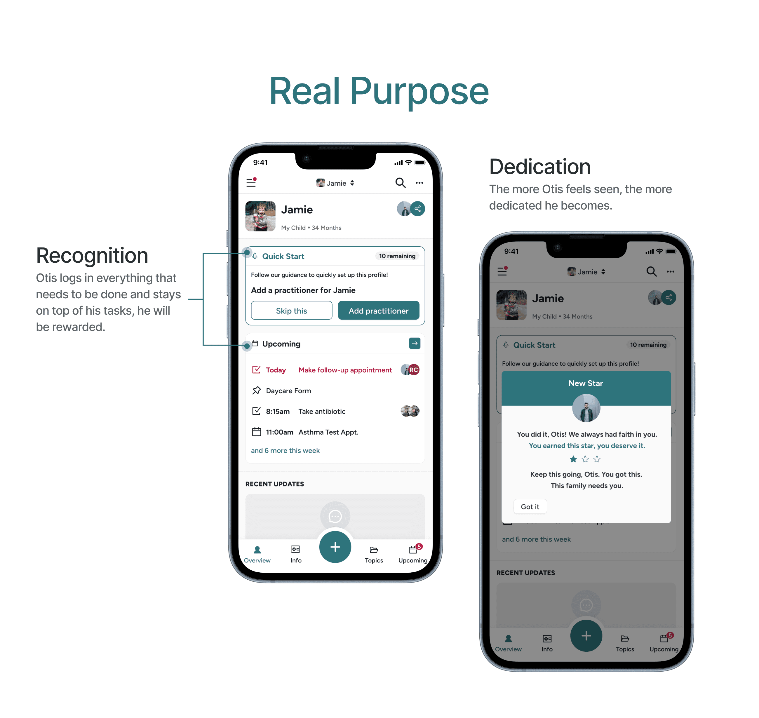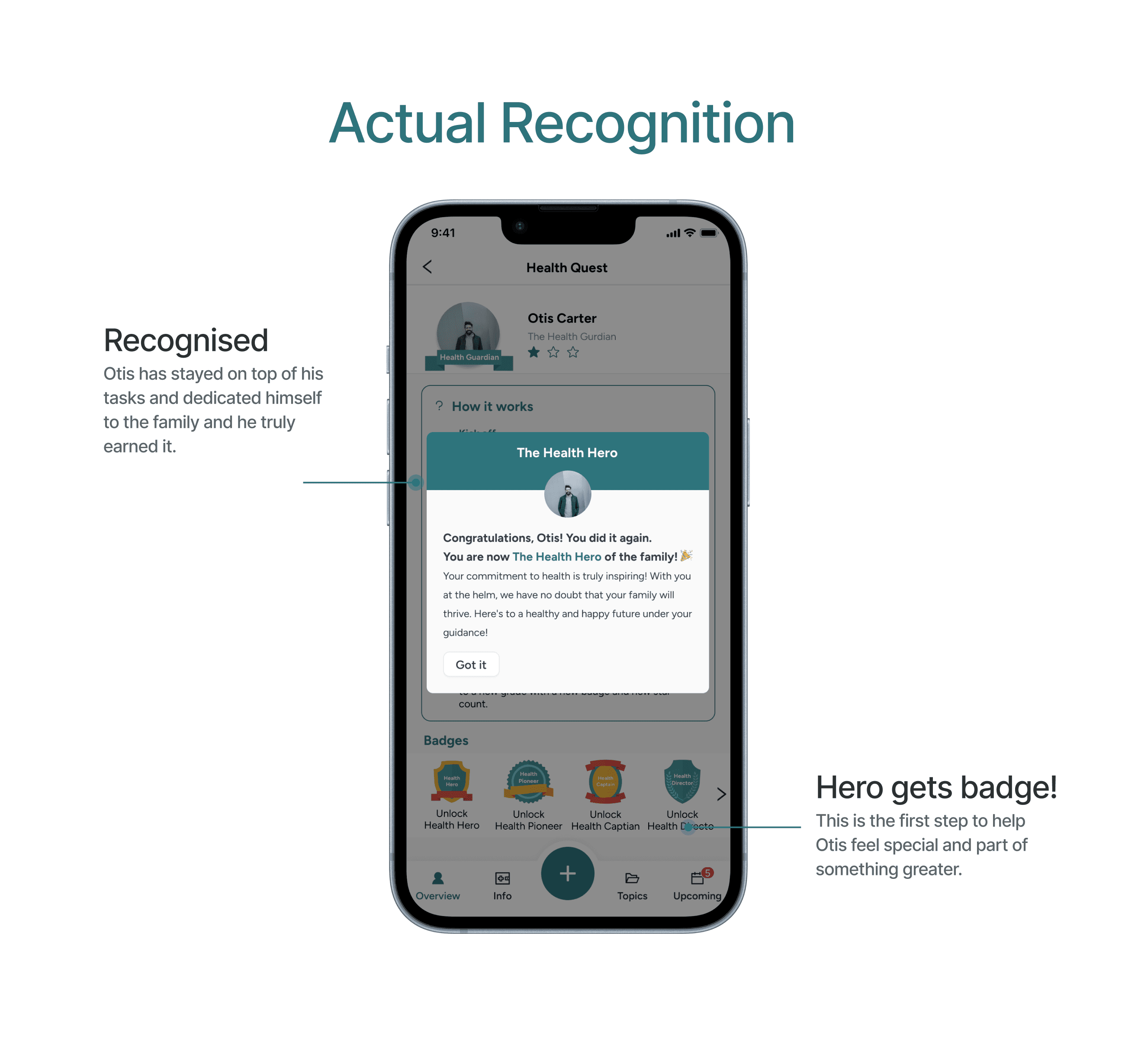 The app assigns a role to the user who takes care of the family, giving them an epic sense of purpose and making them feel like they are part of something bigger than themselves.
